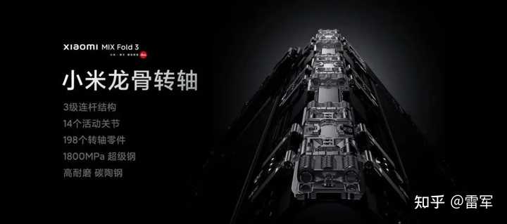 小米MIX Fold 3,搭载小米自研龙骨转轴,创新的三级连杆设计,14 个可活动关节完美贴合屏幕曲率,跌落时稳稳保护屏幕,使用更安心。更精密紧凑的结构设计,转轴区域空间比上代减少17%,不仅让整机更加纤薄,更为整机堆叠留出富余。